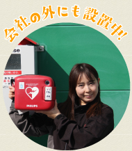 車両の外部にAEDを搭載していますので、もしもの時にご自由にお使いください。