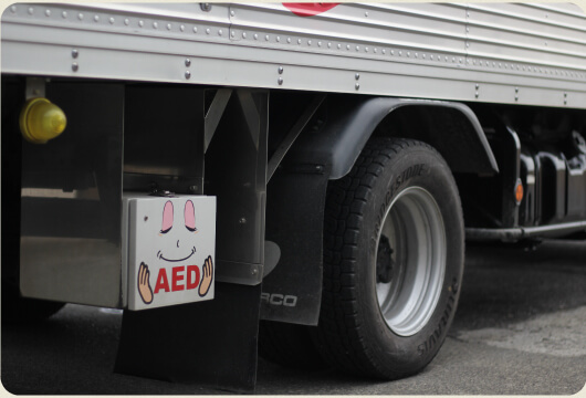 運送業にできる社会貢献として、一部車両にAEDを搭載して運行しています。